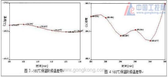 5、控溫結(jié)果與分析:深冷箱在-180℃**大溫差為0.97℃,**小溫差為0.21℃;在160℃時(shí)**大溫差為1.35℃,**小溫差為0.88℃;具體溫差帶如下圖3、4。